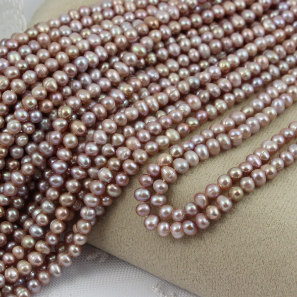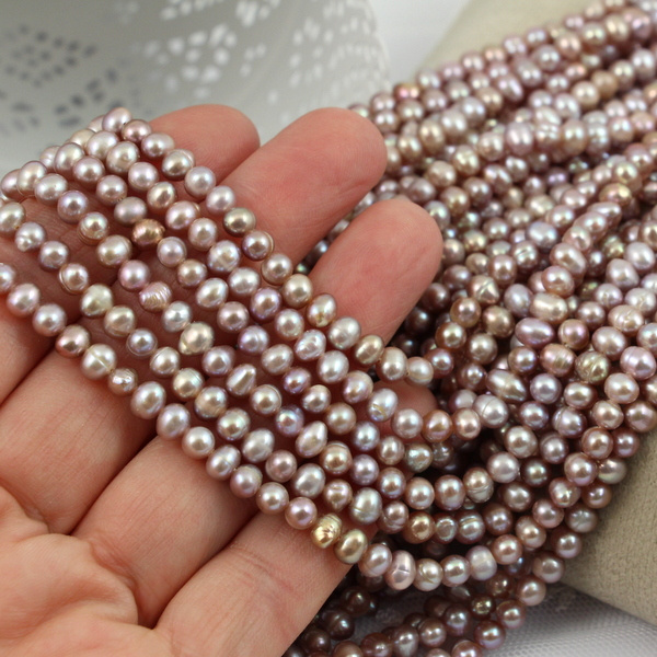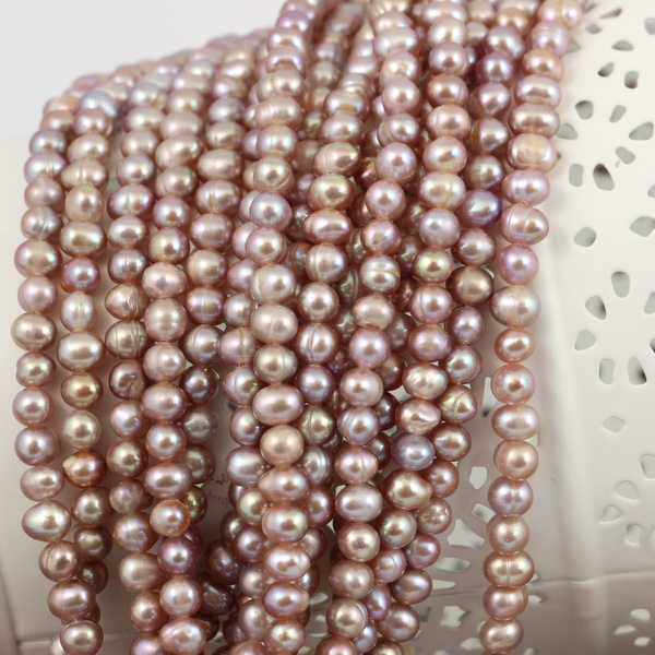 Naturalna perła słodkowodna w kształcie nieregularnych kul, kolor różowo-fioletowy.