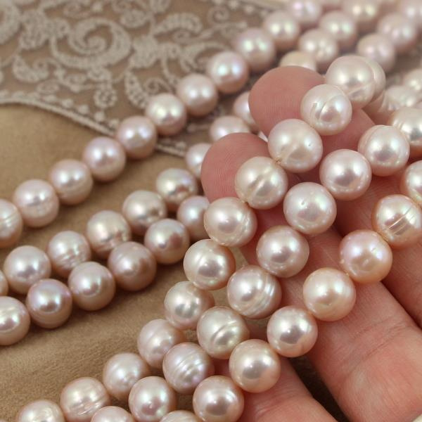 OpisDość duże różowe naturalne perełki słodkowodne w kształcie kul. Kule z prążkami.