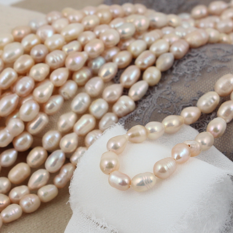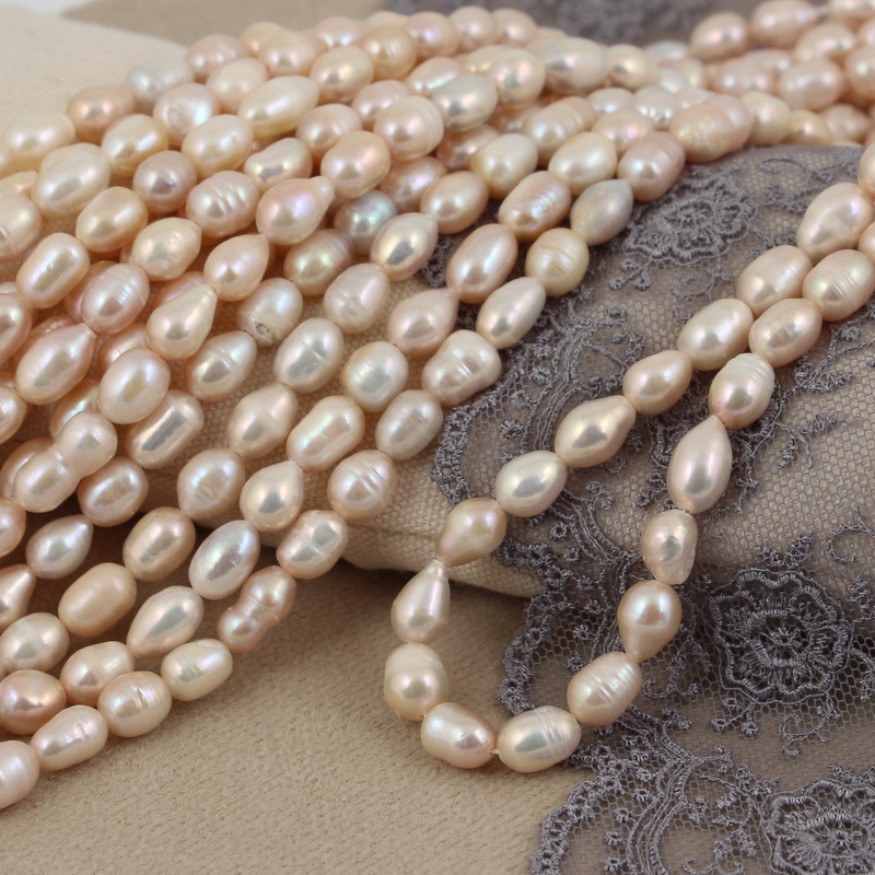 Perła słodkowodna różowa oliwka 8x6mm [sznur 34cm]