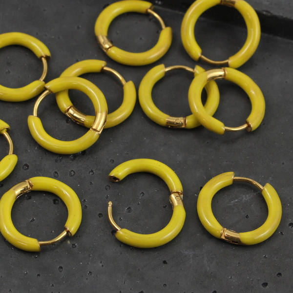 Bigle emaliowane kółka stal szlachetna pozłacana żółte 18mm [para]