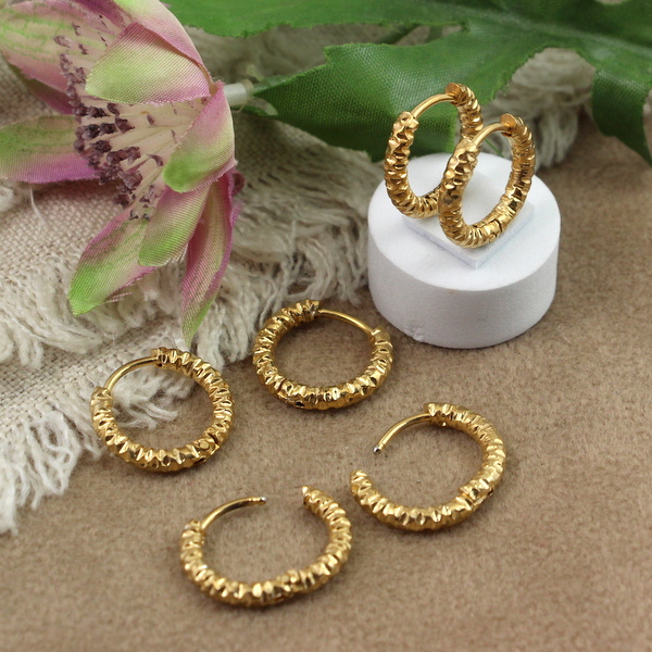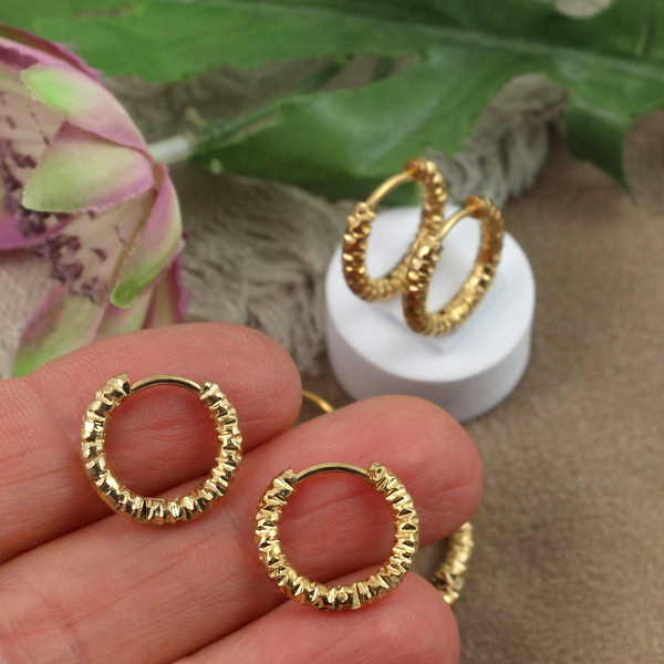 Bigle kajdankowe koła stal szlachetna pozłacana fakturowana 15mm [para]