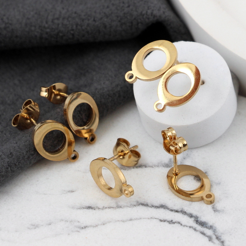 Sztyfty bigle do kolczyków stal szlachetna pozłacane owalne 12x8mm [para]