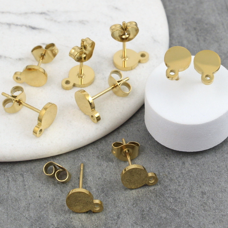Bigle - sztyfty do kolczyków, wykonane ze stali chirurgicznej, przeznaczone do podwieszania elementów ozdobnych, pozłacane. Przód sztyftów jest gładki.