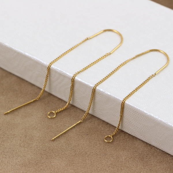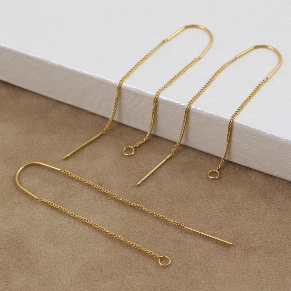 Bigle sztyfty ze stali pozłacanej z łańcuszkiem. Z jednej strony sztyft z drugiej ogniwo. Sztyfty do przekładania przez dziurkę w uchu.