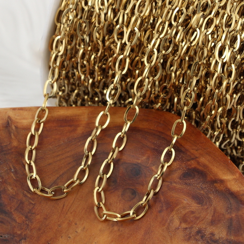 Łańcuch stalowy ze stali chirurgicznej 304, pozłacany, ogniwa masywne, owalne, przęciete.