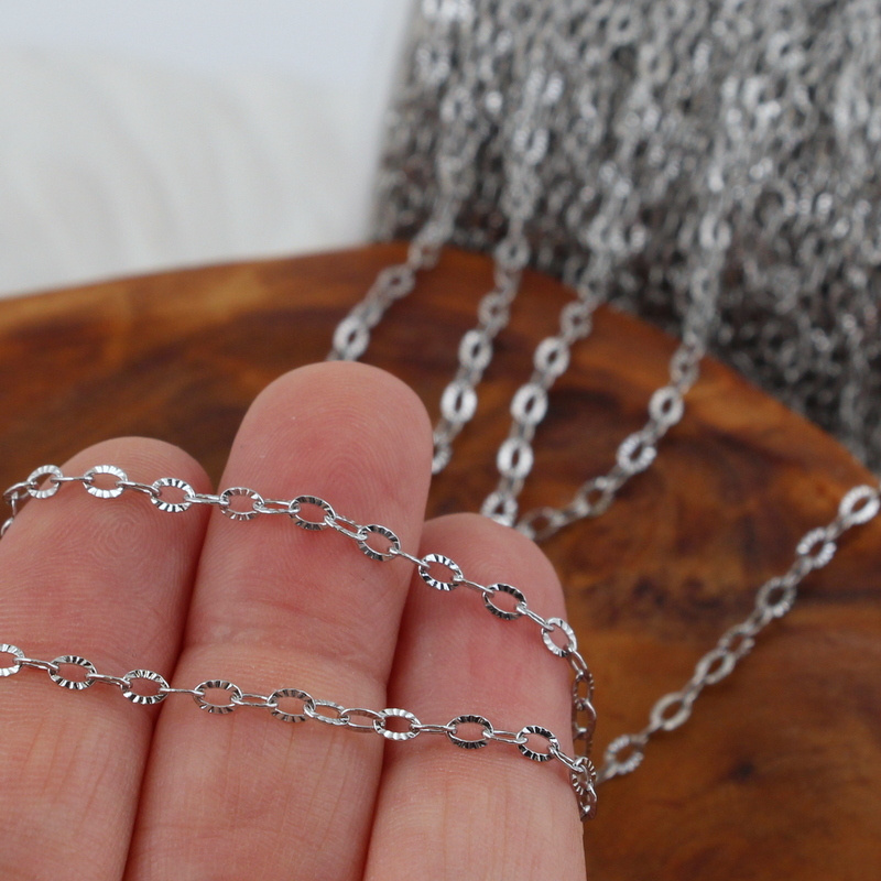 Łańcuch ze stali chirurgicznej z owalnymi ogniwami.