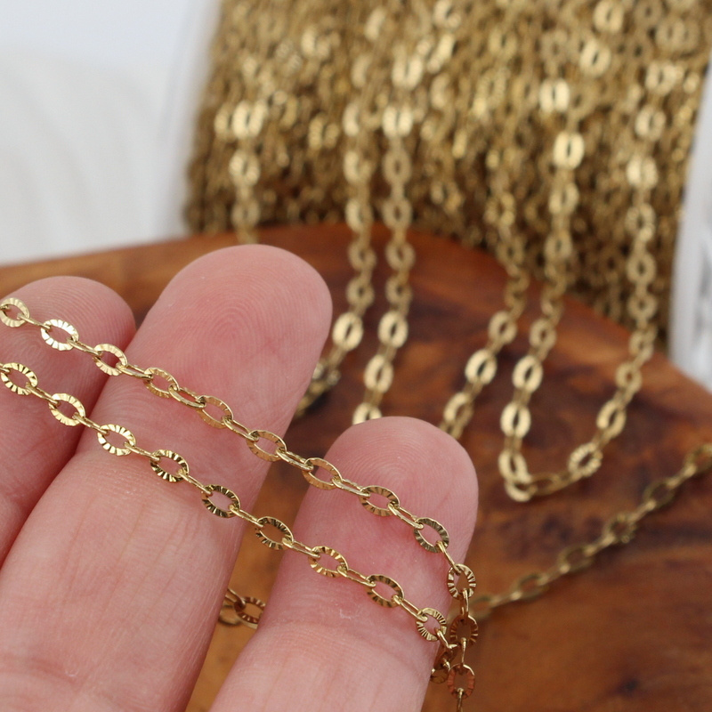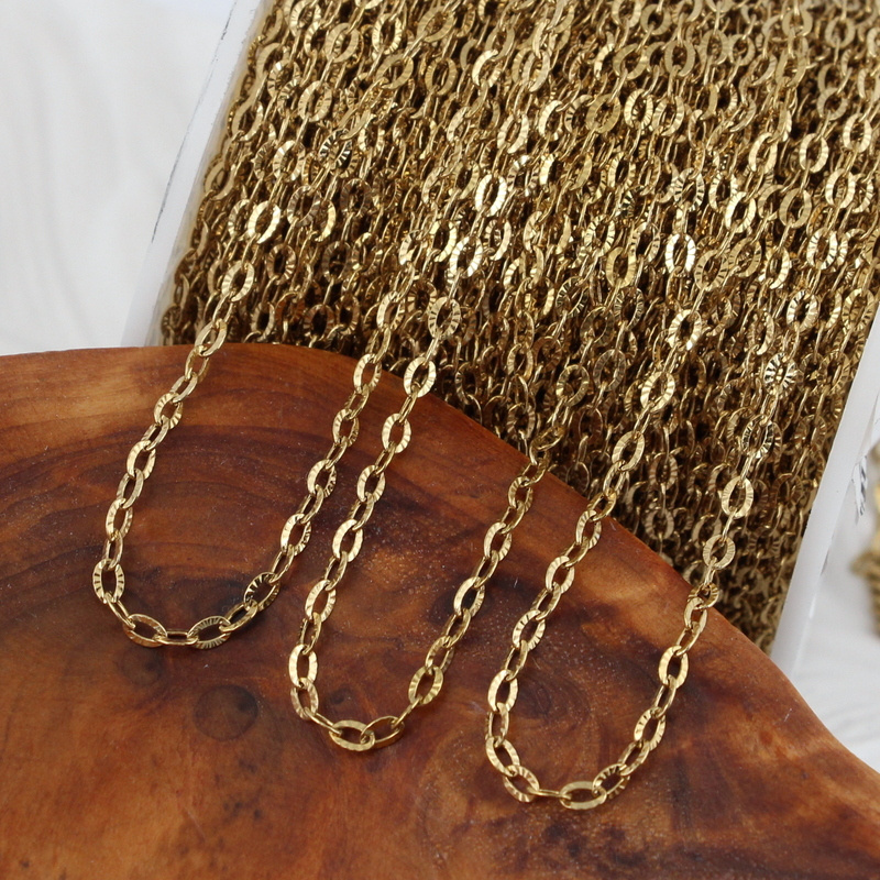 Łańcuszek owalny teksturowany stal szlachetna pozłacana 4x2,5mm [1metr]
