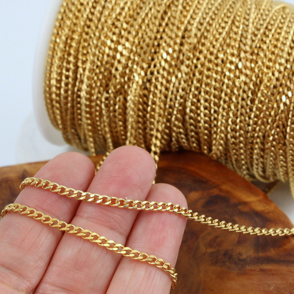Łańcuszek ze stali pozłacanej, płaska pancerka.