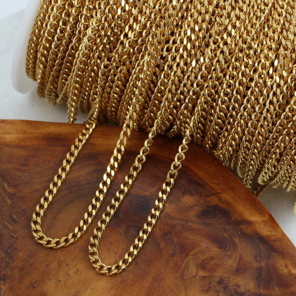 Łańcuszek pancerka stal szlachetna pozłacana 3mm [1 metr]