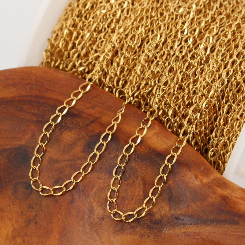 Łańcuszek ze stali pozłacanej, drobny, do przedłużania lub jako baza.