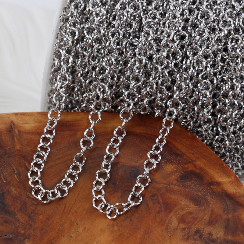 Łańcuch stalowy ze stali chirurgicznej 304, ogniwa okrągłe typu rolo, karbowane.