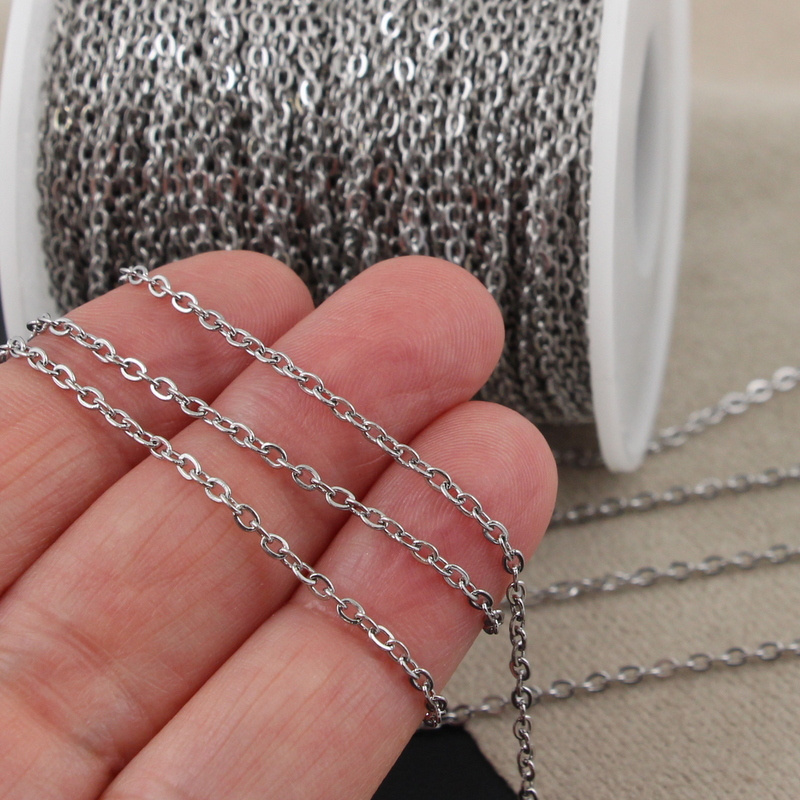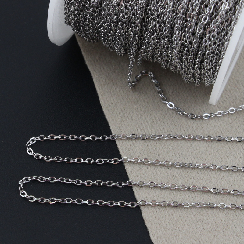 Łańcuszek ze stali, drobny, owalne ogniwka.