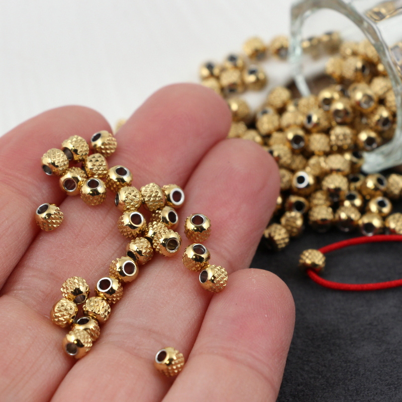 Przekładka kula fakturowana stal szlachetna pozłacana 4mm