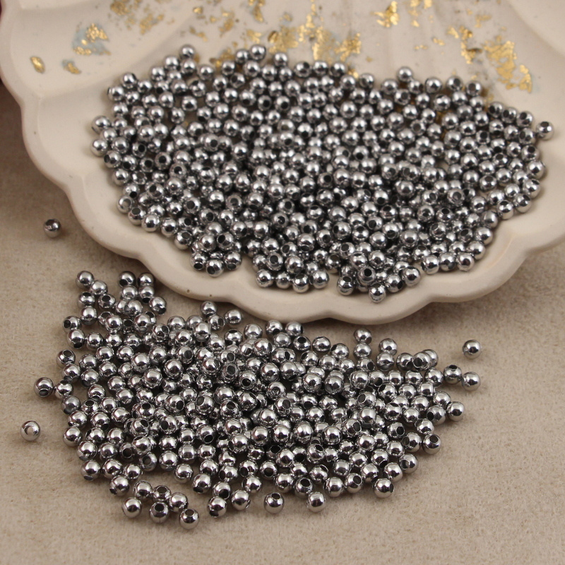 Kuleczka ze stali szlachetnej 304 do przekładania kamieni i koralików, w kolorze ciemnym srebrnym.