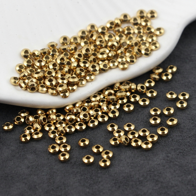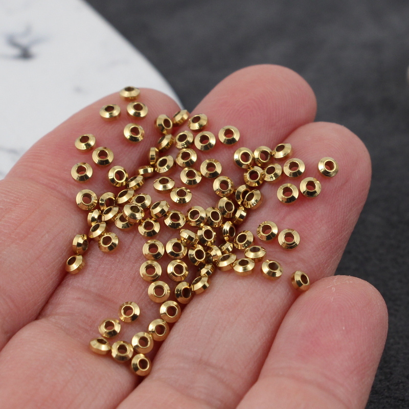 Maleńkie przekładki ze stali szlachetnej 304, pozłacane w kształcie oponki/dysku. Mogą służyć jako ozdoba między koralikami.