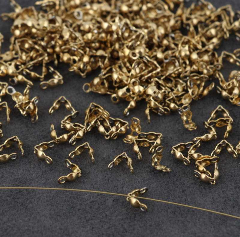 Łapaczki dziewczynki ze stali szlachetnej, do zakończeń linek, żyłek i cienkich sznurków. Polecamy do delikatnych bransoletek i naszyjników z drobnych kamieni (w przypadku użycia linki należy zastosować kulkę zaciskową, a w przypadku nici zawiązać supełek).