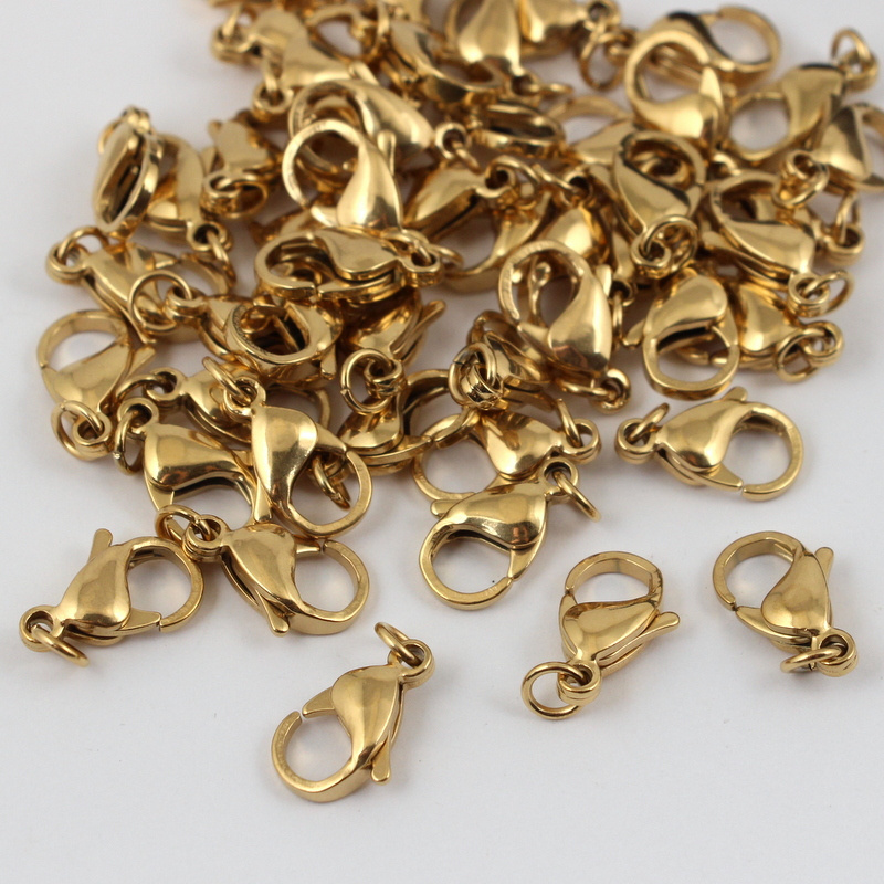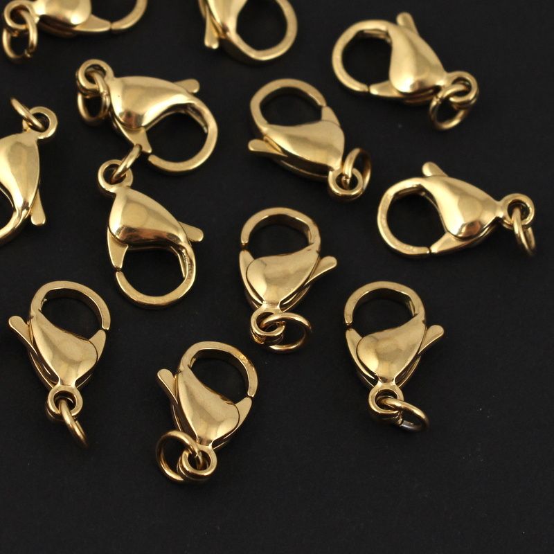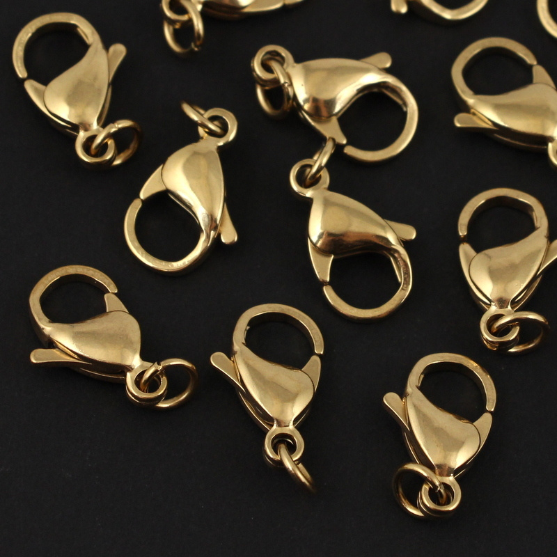 Duży karabińczyk wykonany ze stali chirurgicznej 304, pozłacany 18kT.