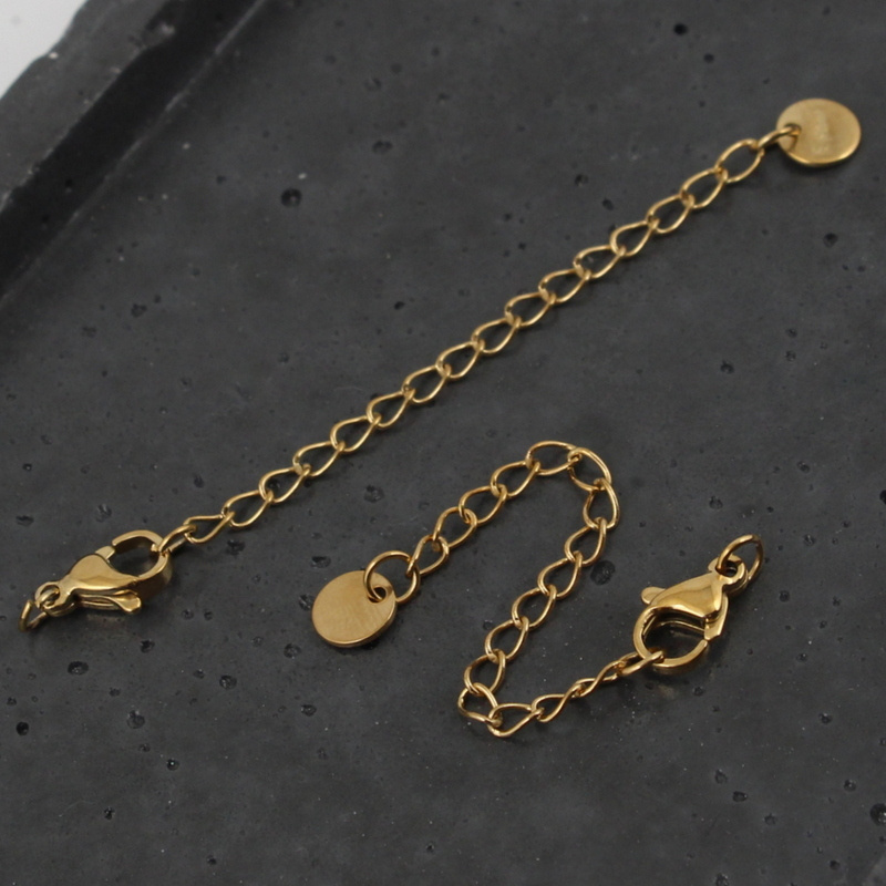 Zapięcie przedłużka z karabińczykiem stal szlachetna pozłacana 5cm