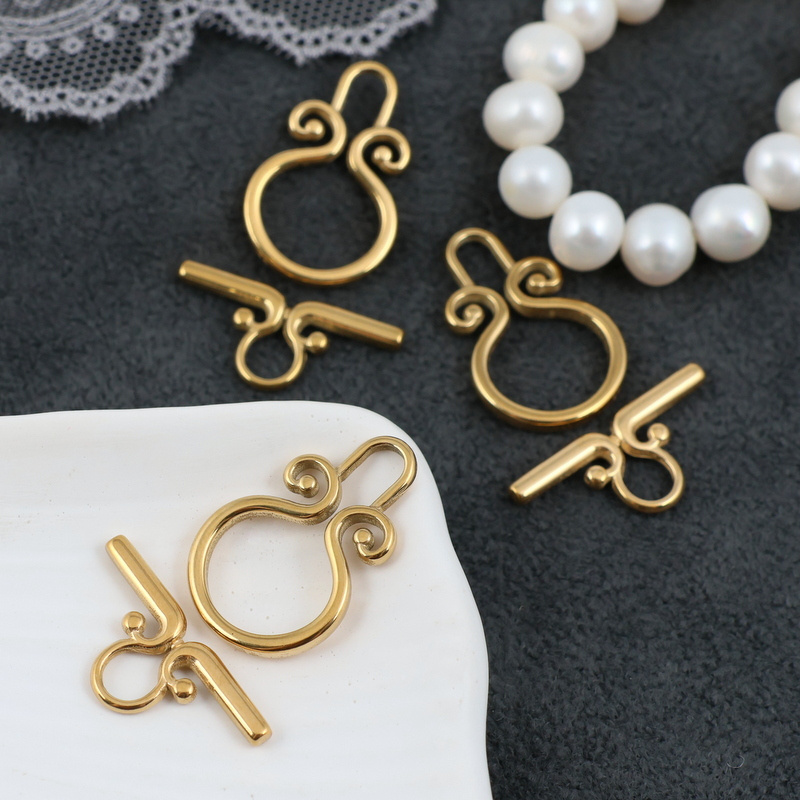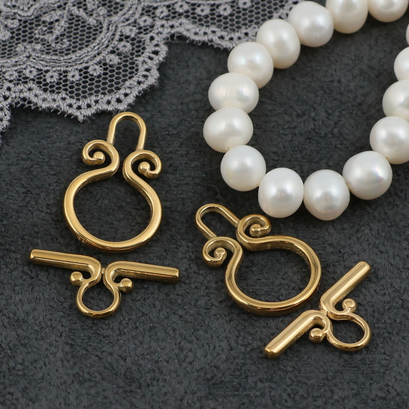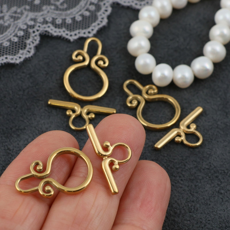 Zapięcie przekładane typu toggle w kolorze złotym do naszyjników i bransolet.