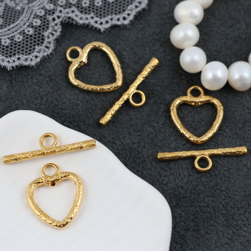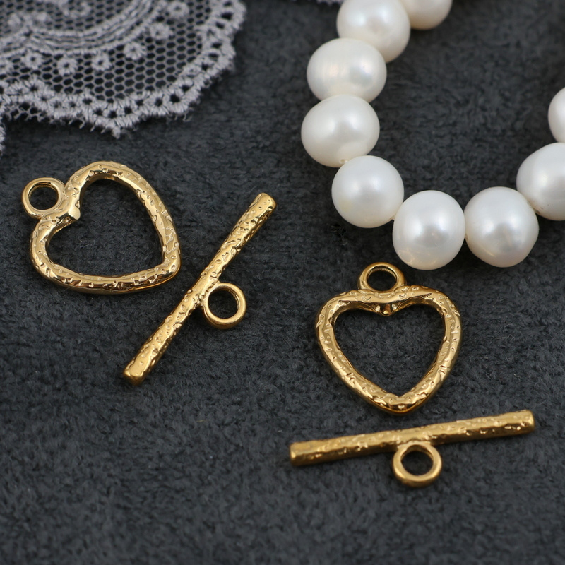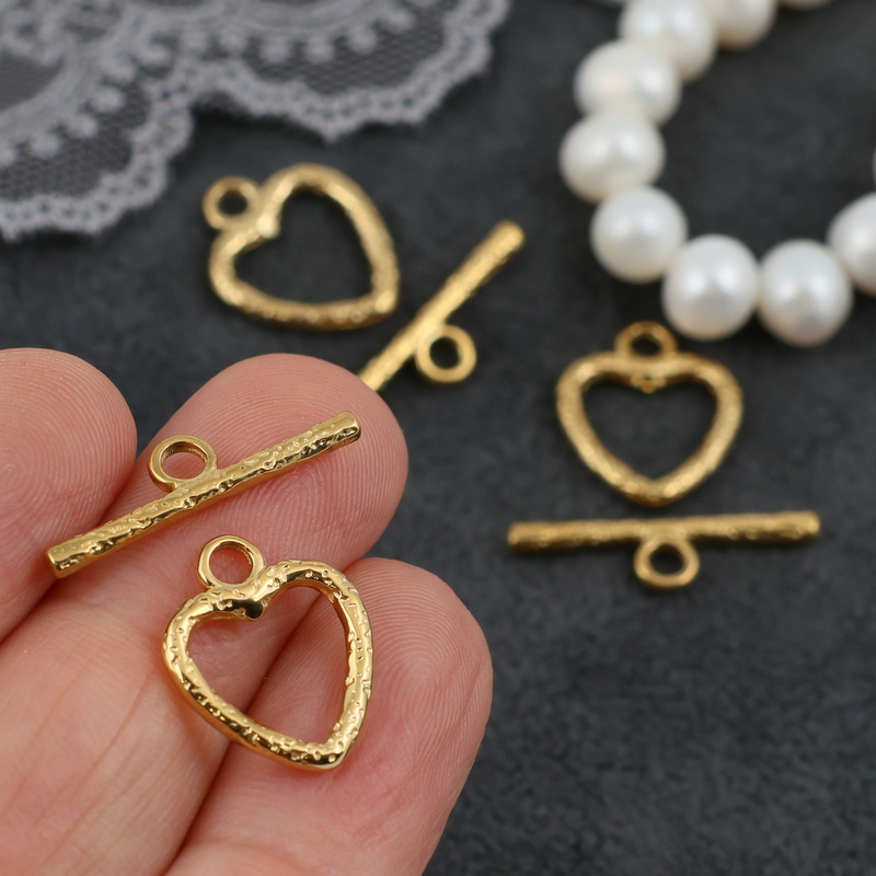 Zapięcie przekładane typu toggle do naszyjników i bransolet w kolorze złotym, kształt serca.