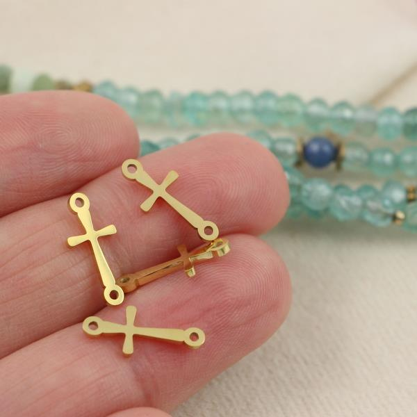 Łącznik krzyżyk stal szlachetna pozłacana PVD 15x6mm