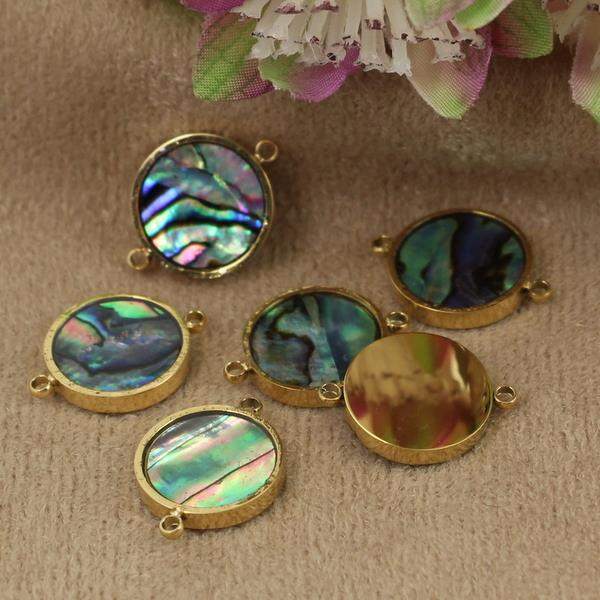 Łącznik moneta z muszlą paua stal szlachetna pozłacana PVD 16x12mm