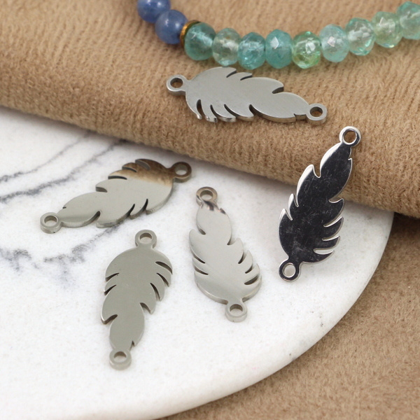Delikatne piórko ze stali szlachetnej 201 - łącznik idealny do makramy lub łańcuszka.