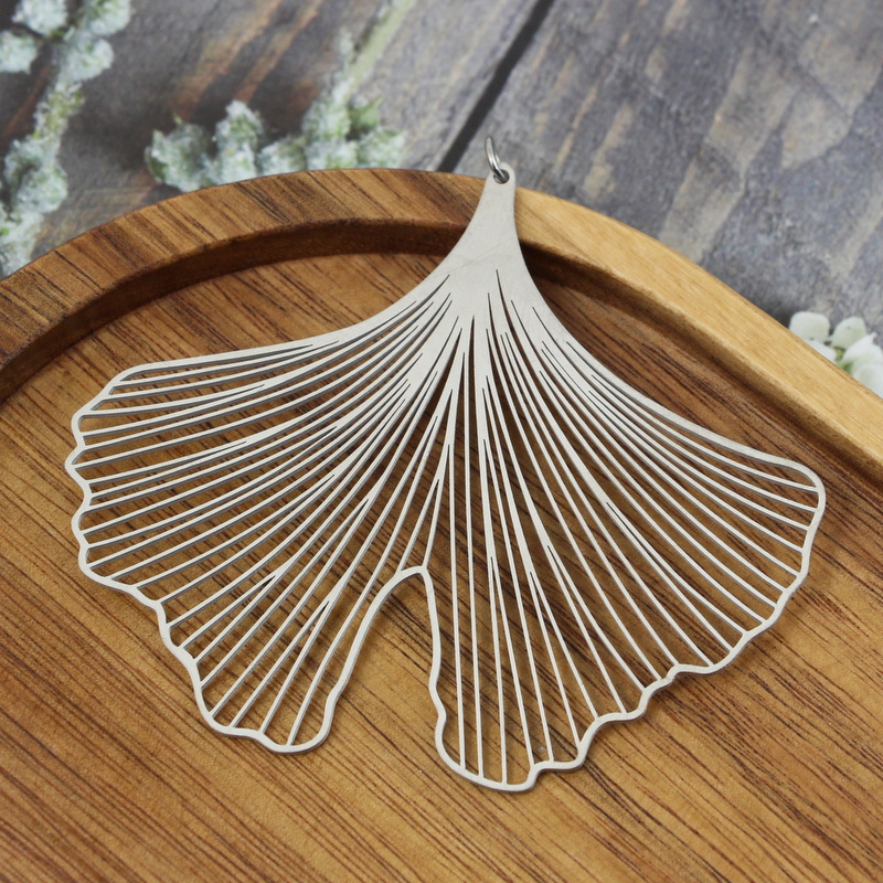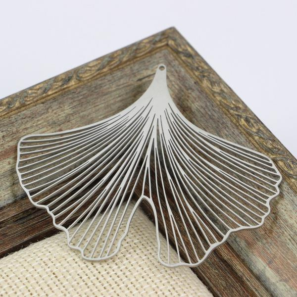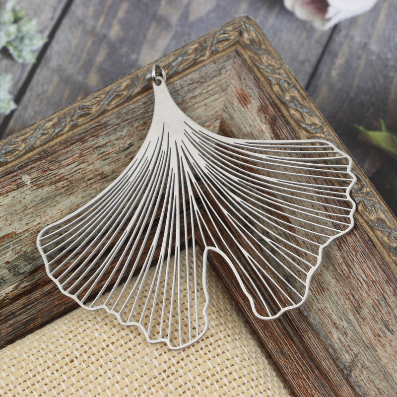 Zawieszka ażurowa miłorząb / ginko liść stal szlachetna srebrna 60x70mm