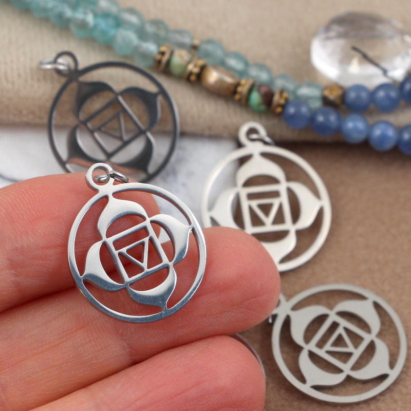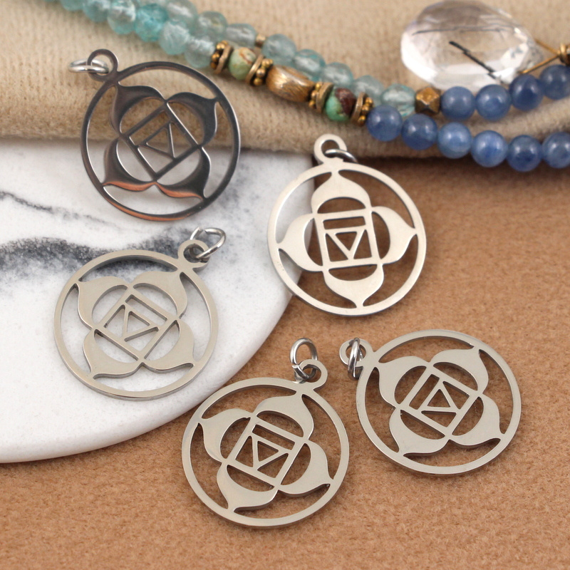 Ażurowa zawieszka ze stali chirurgicznej z motywem kwiatu. Zawieszka ma dołączone ogniwko montażowe.