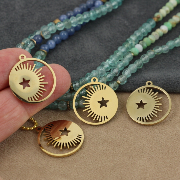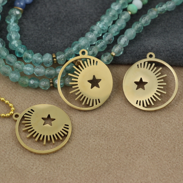 Zawieszka ażurowa stal szlachetna pozłacana słońce i gwiazdka 20mm