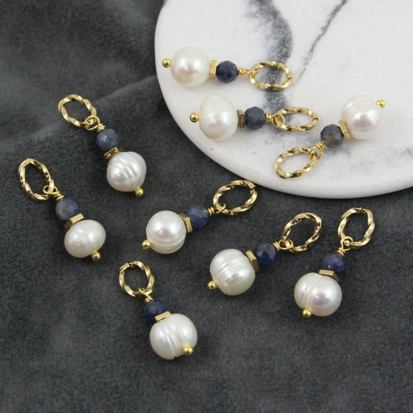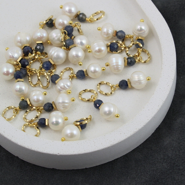 Zawieszka filigranowa perła, szafir + stal 23mm