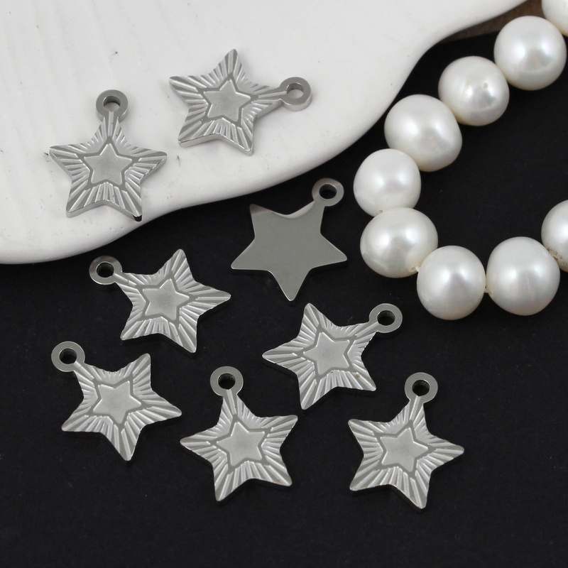 Małe zawieszki w kształcie gwiazdek, wykonane ze stali nierdzewnej. Idealne do bransoletek.