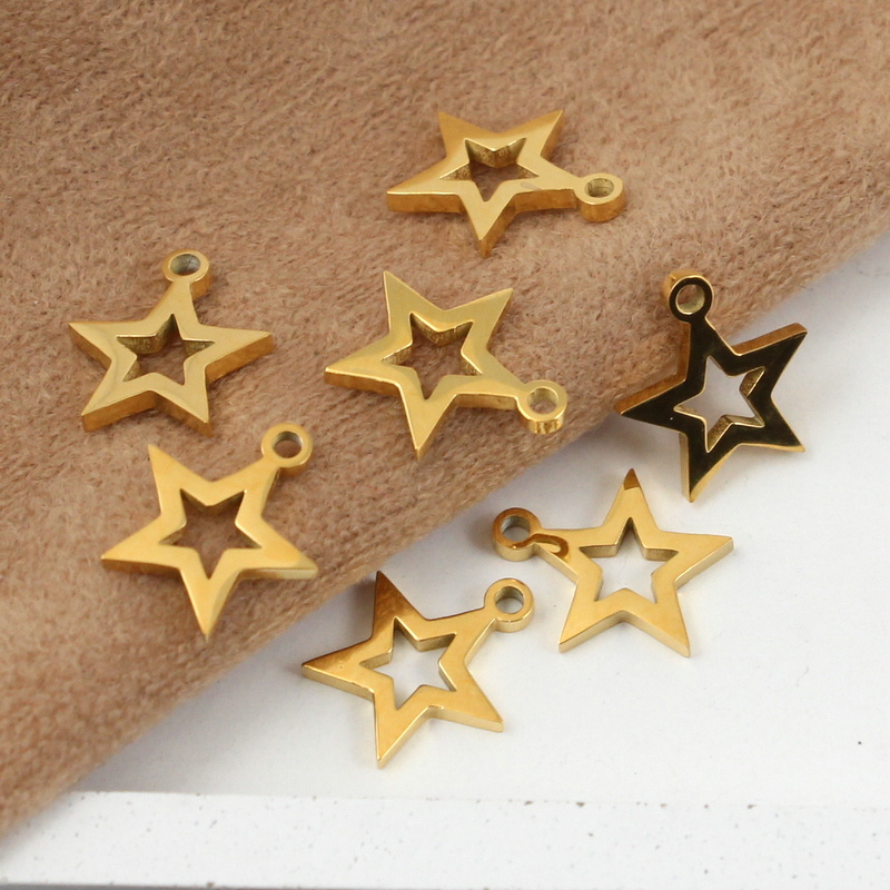 Zawieszka z polerowanej stali szlachetnej typu 304 w kształcie pięcioramiennej gwiazdy.