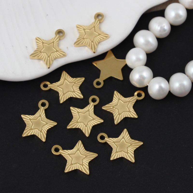 Małe zawieszki w kształcie gwiazdek, wykonane ze stali nierdzewnej. Idealne do bransoletek.