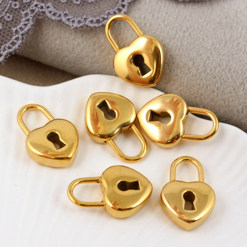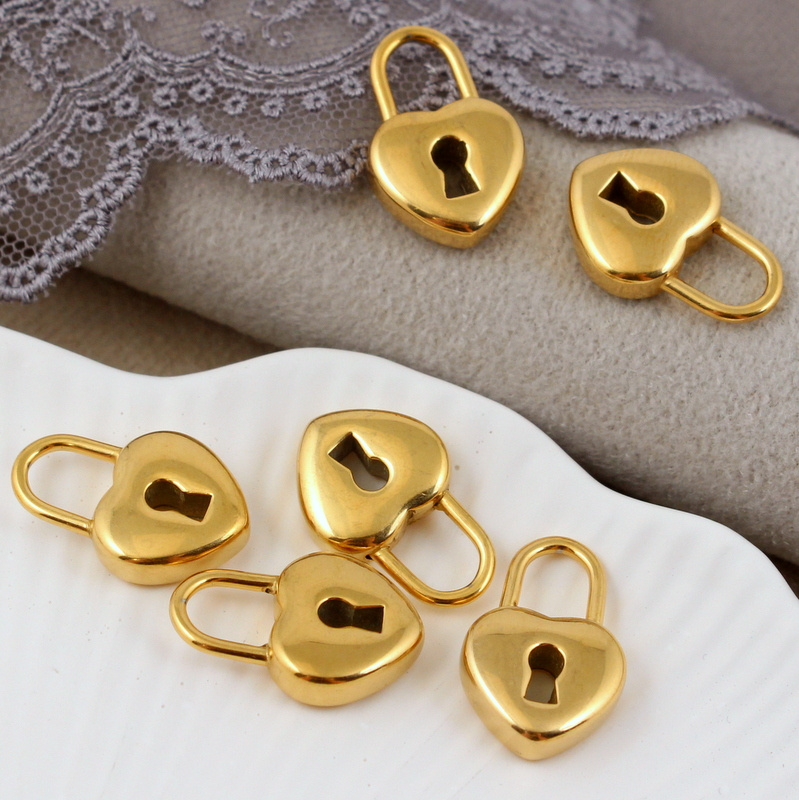 Piękna, wypukła kłódka w kształcie kłódki. Zawieszka ze stali szlachetnej 304, pozłacana.