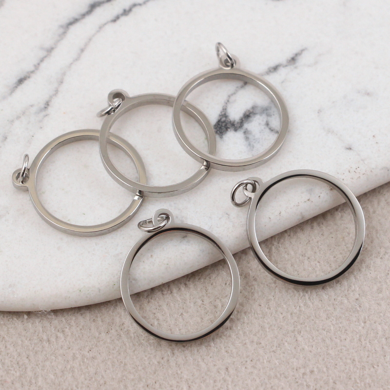Zawieszka ze stali szlachetnej w kształcie koła z ogniwem 4mm.
