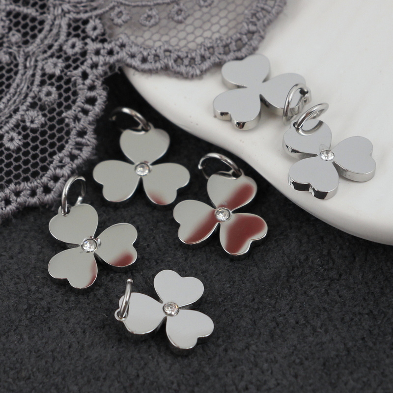 Zawieszka koniczyna z cyrkonią stal szlachetna 11mm