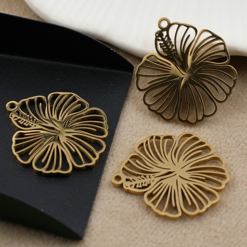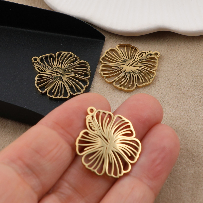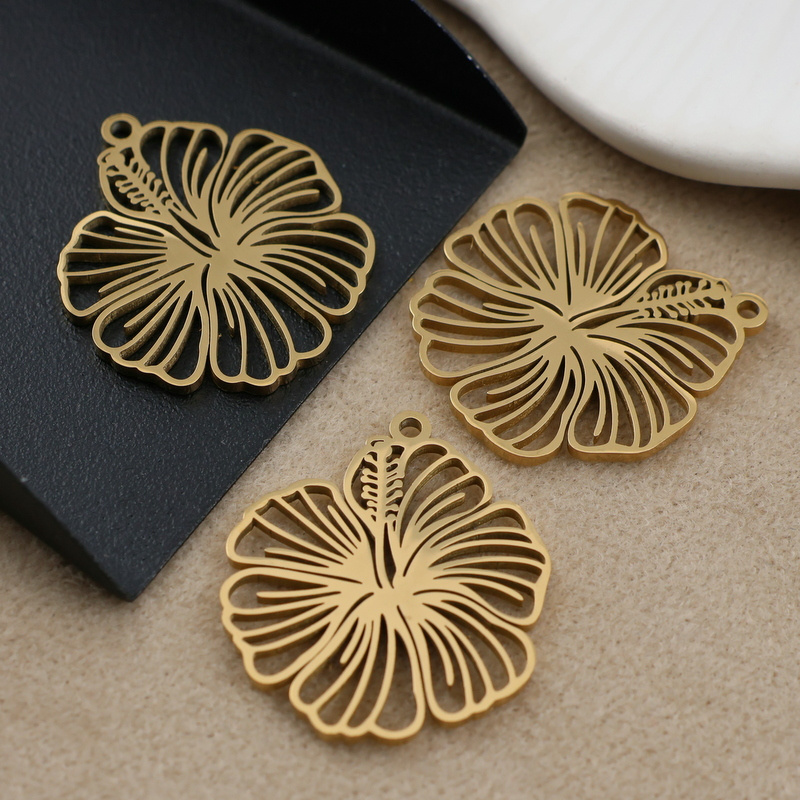 Zawieszka kwiat hibiskusa stal szlachetna pozłacana 23mm