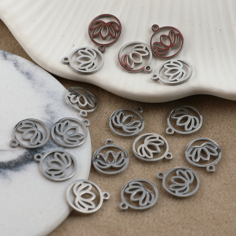 Zawieszki ze stali 304 - ażurowy motyw stylizowanego kwiatu lotosu.