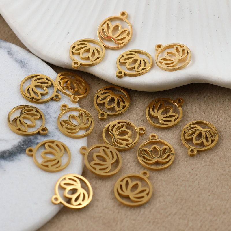 Zawieszki ze stali 304 - ażurowy motyw stylizowanego kwiatu lotosu.