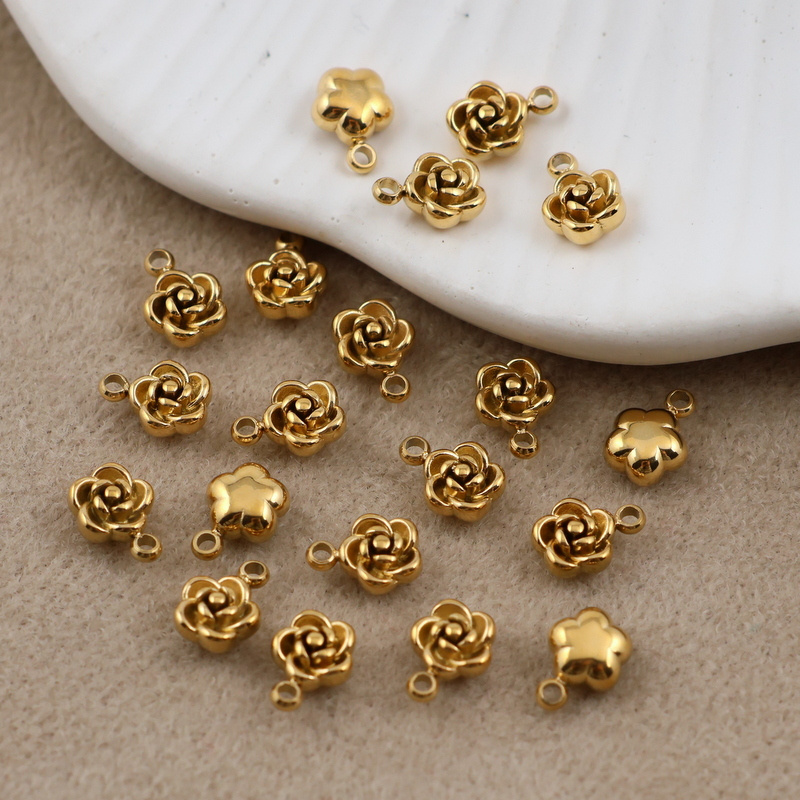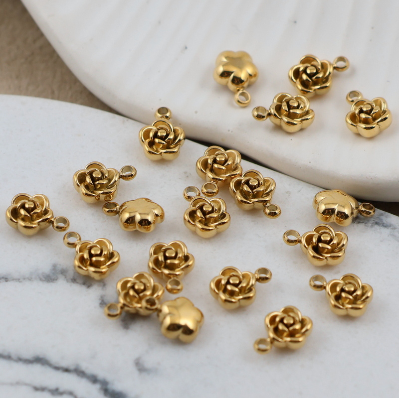 Zawieszka kwiatek rzeźbiony stal szlachetna pozłacana 5mm