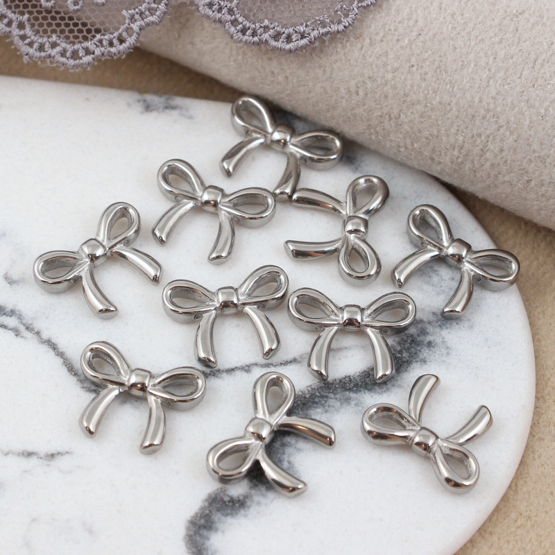 Zawieszki ze stali 304 w kształcie klasycznej wiązanej kokardki - do użycia jako zawieszka lub łącznik.