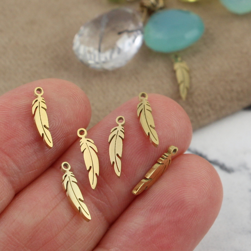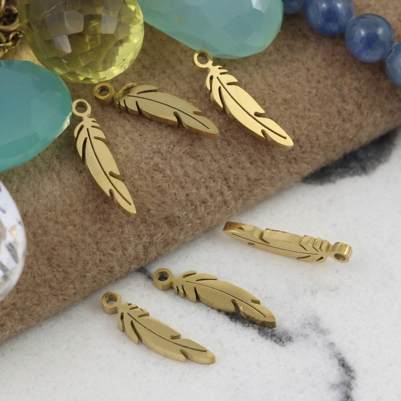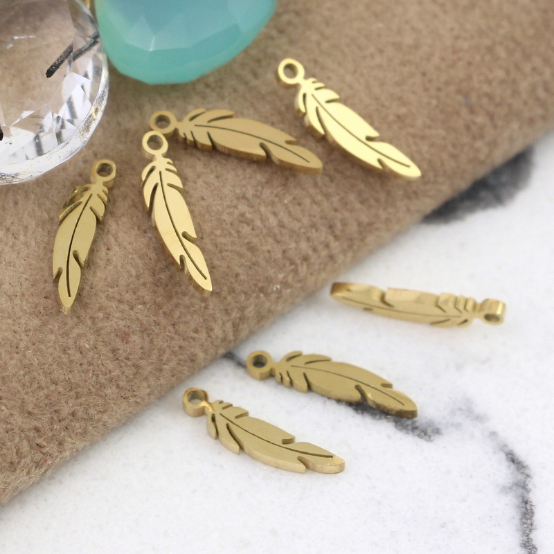 Zawieszka mini pióro stal szlachetna pozłacana PVD 12x3mm