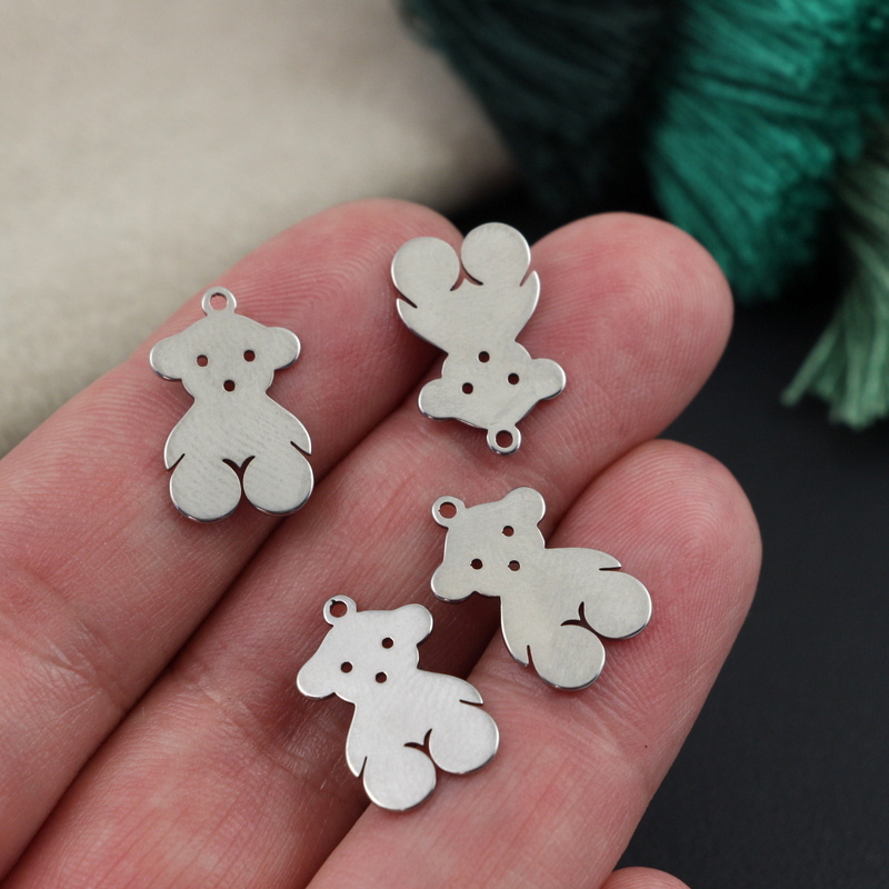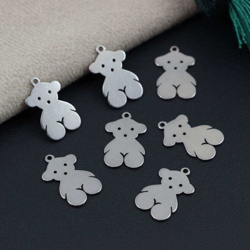 Zawieszka miś z polerowanej stali szlachetnej typu 201 (obustronnie polerowane).