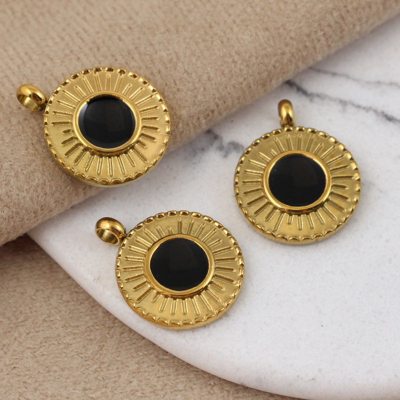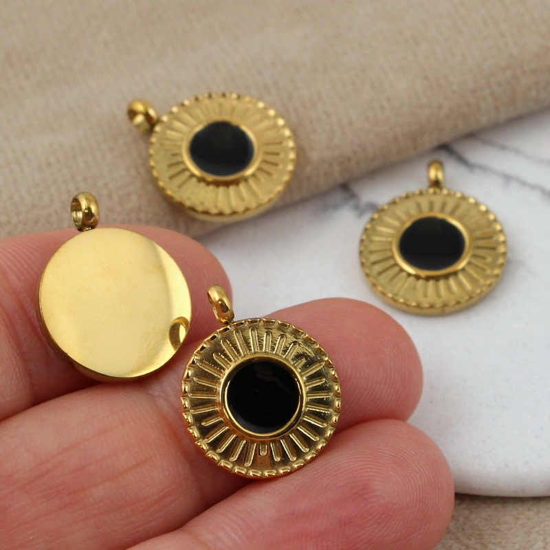 Zawieszka moneta z czarnym oczkiem stal szlachetna pozłacana 15mm