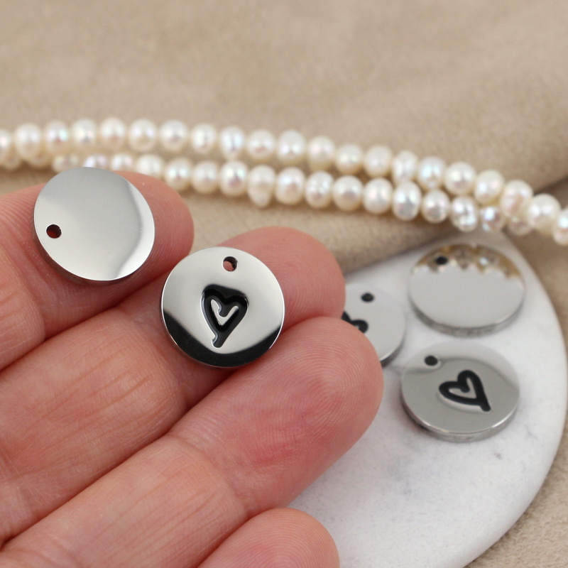 Zawieszka w kształcie monety z motywem serca. Idealna do bransoletek, kolczyków i naszyjników.