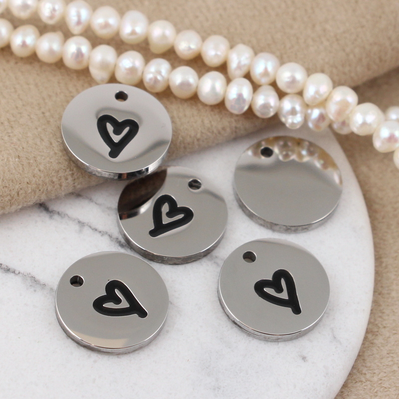 Zawieszka moneta z sercem stal szlachetna 14mm