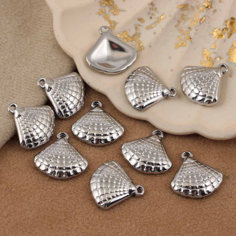 Zawieszka w kształcie muszli, wykonana ze stali szlachetnej 304.