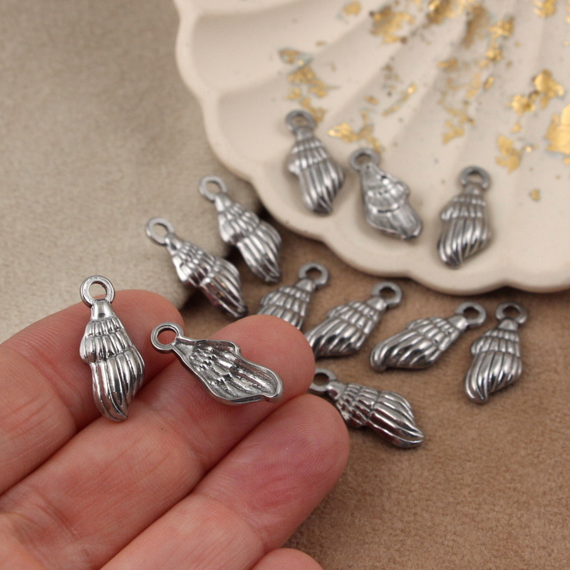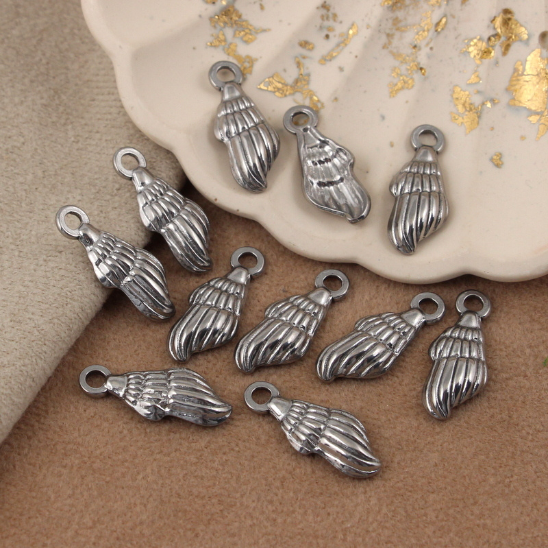 Zawieszka w kształcie muszli, wykonana ze stali szlachetnej 304.