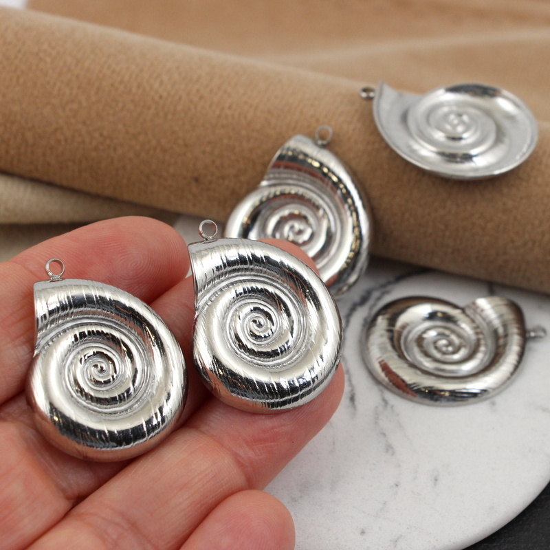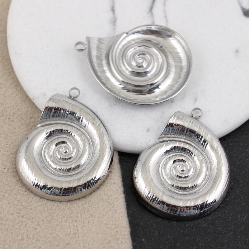 Okazała zawieszka ze stali szlachetnej 304 w kształcie muszli.
